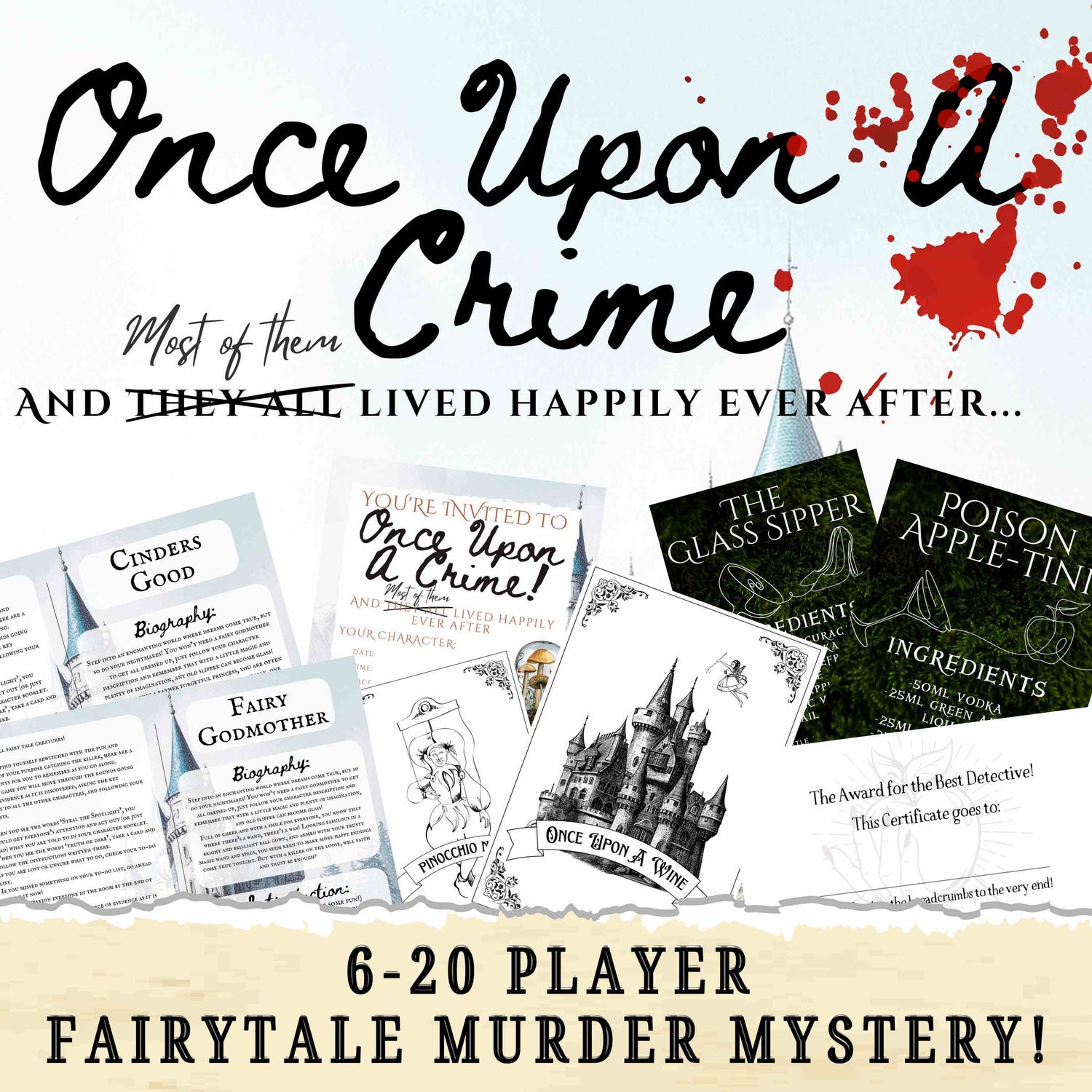 Once Upon A Crime- A Fairy Tale Themed Murder Mystery Party Game (6-20 Guests)